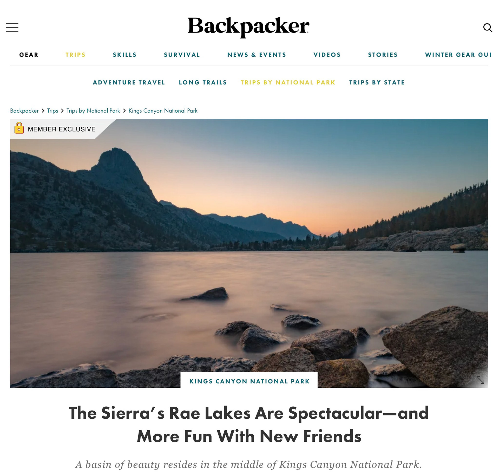 Two of my photos have appeared in Backpacker Magazine – Lyell Glacier (now considered an ice field) and Mount Lyell in Yosemite National Park; and a long exposure of Middle Rae Lake in front of Fin Dome at sunset in Kings Canyon National Park.