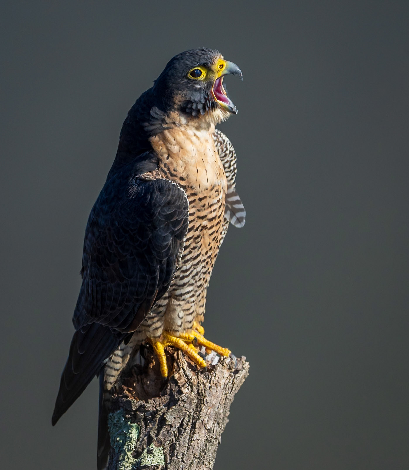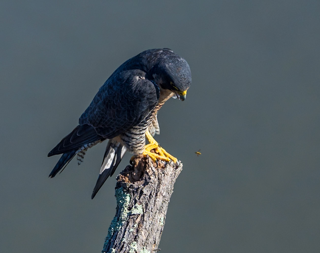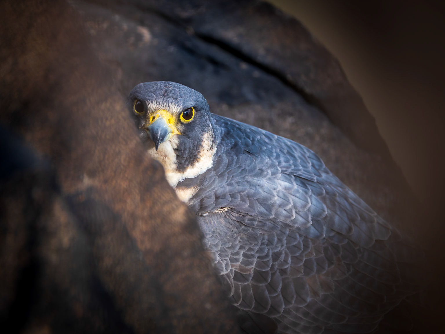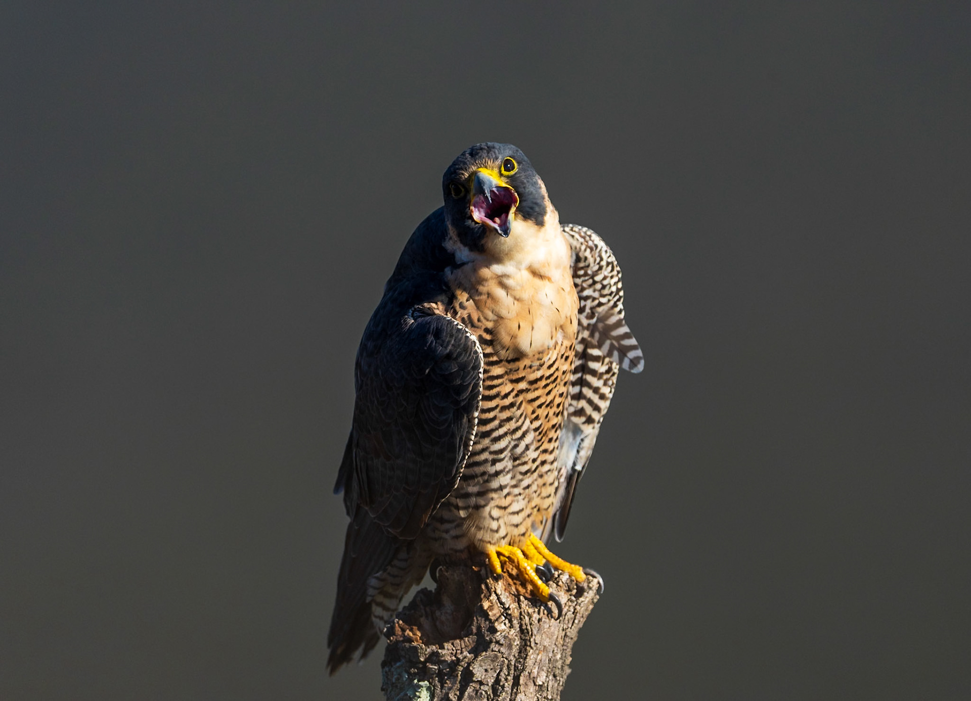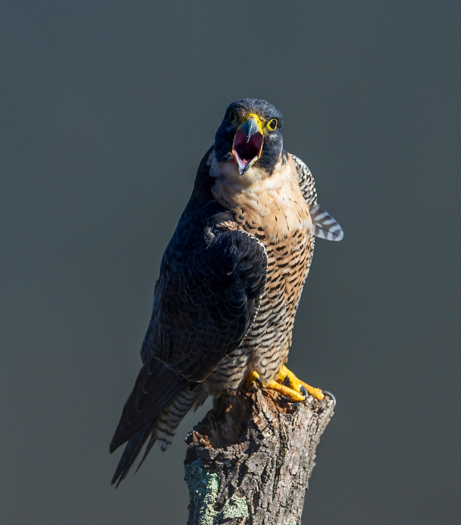 Peregrine falcons on the cliffs of the Hudson Palisades. Viewed from State Line Lookout in Palisades Interstate Park in Alpine, New Jersey.