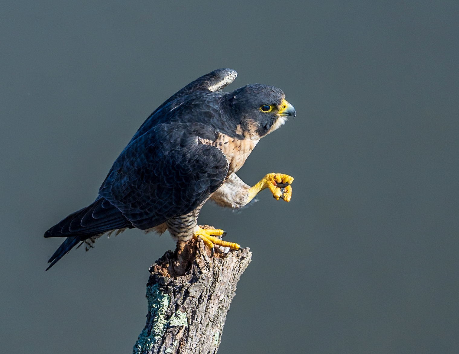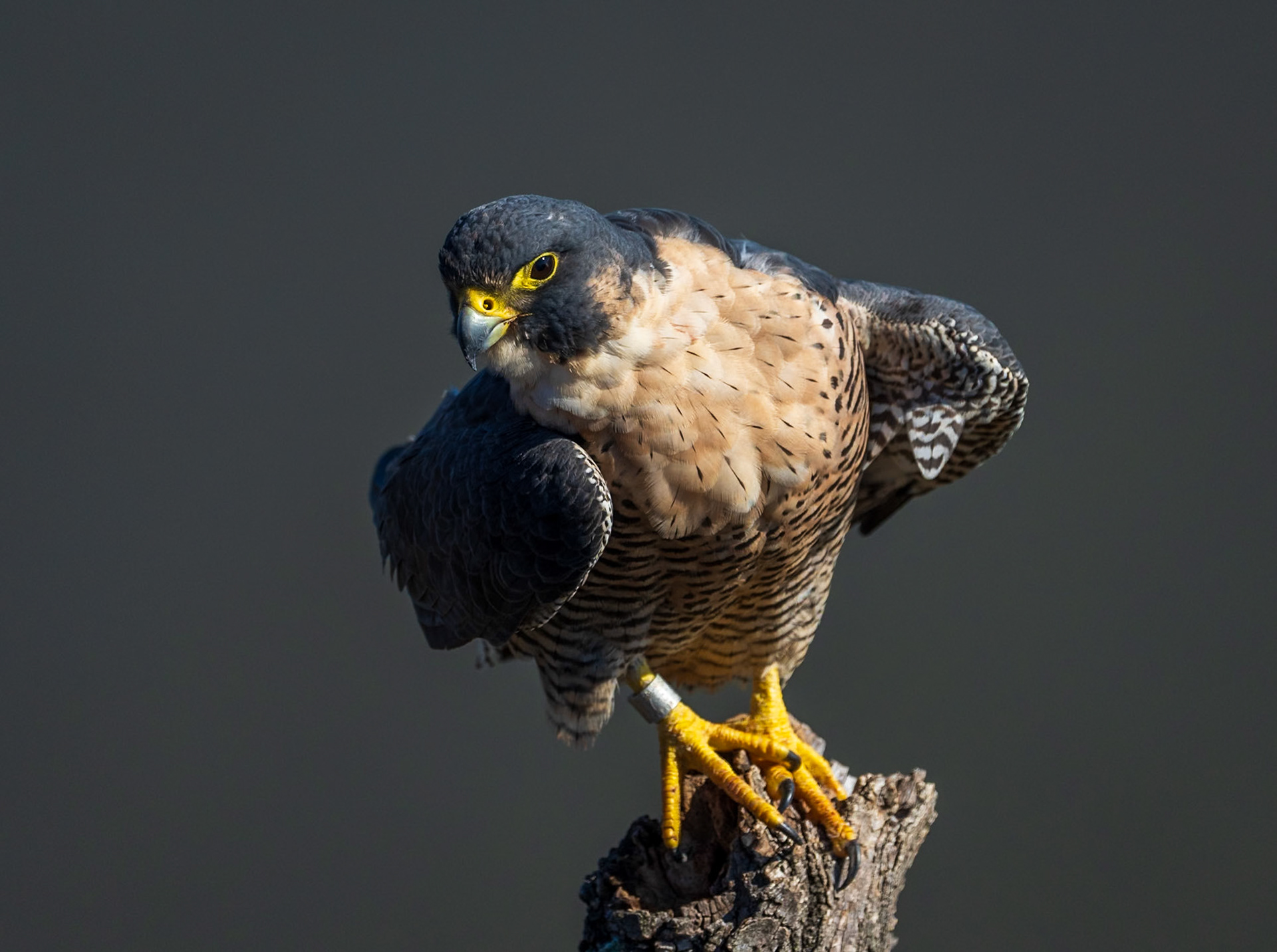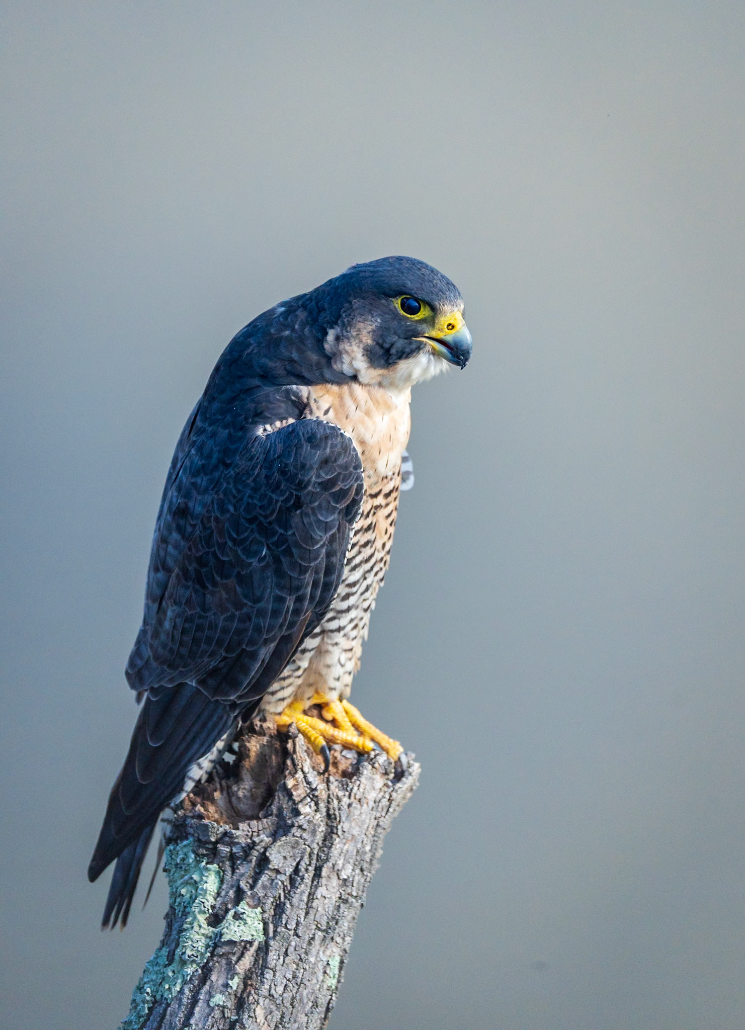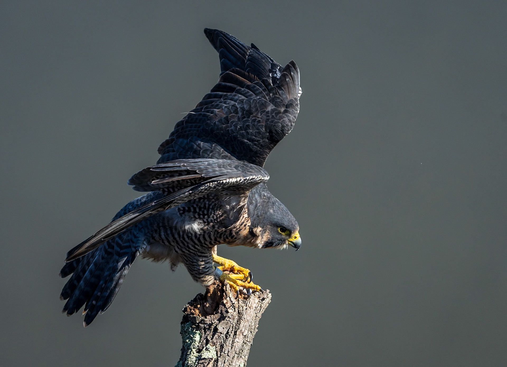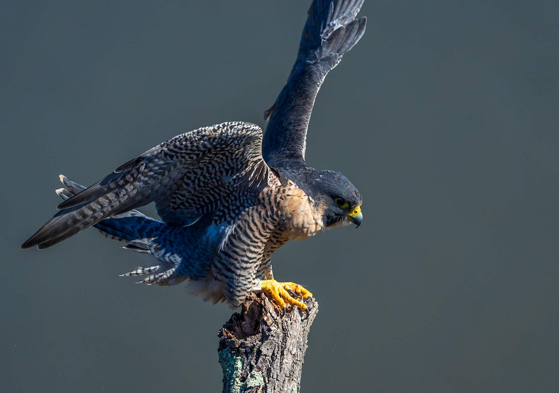 Peregrine falcons on the cliffs of the Hudson Palisades. Viewed from State Line Lookout in Palisades Interstate Park in Alpine, New Jersey.